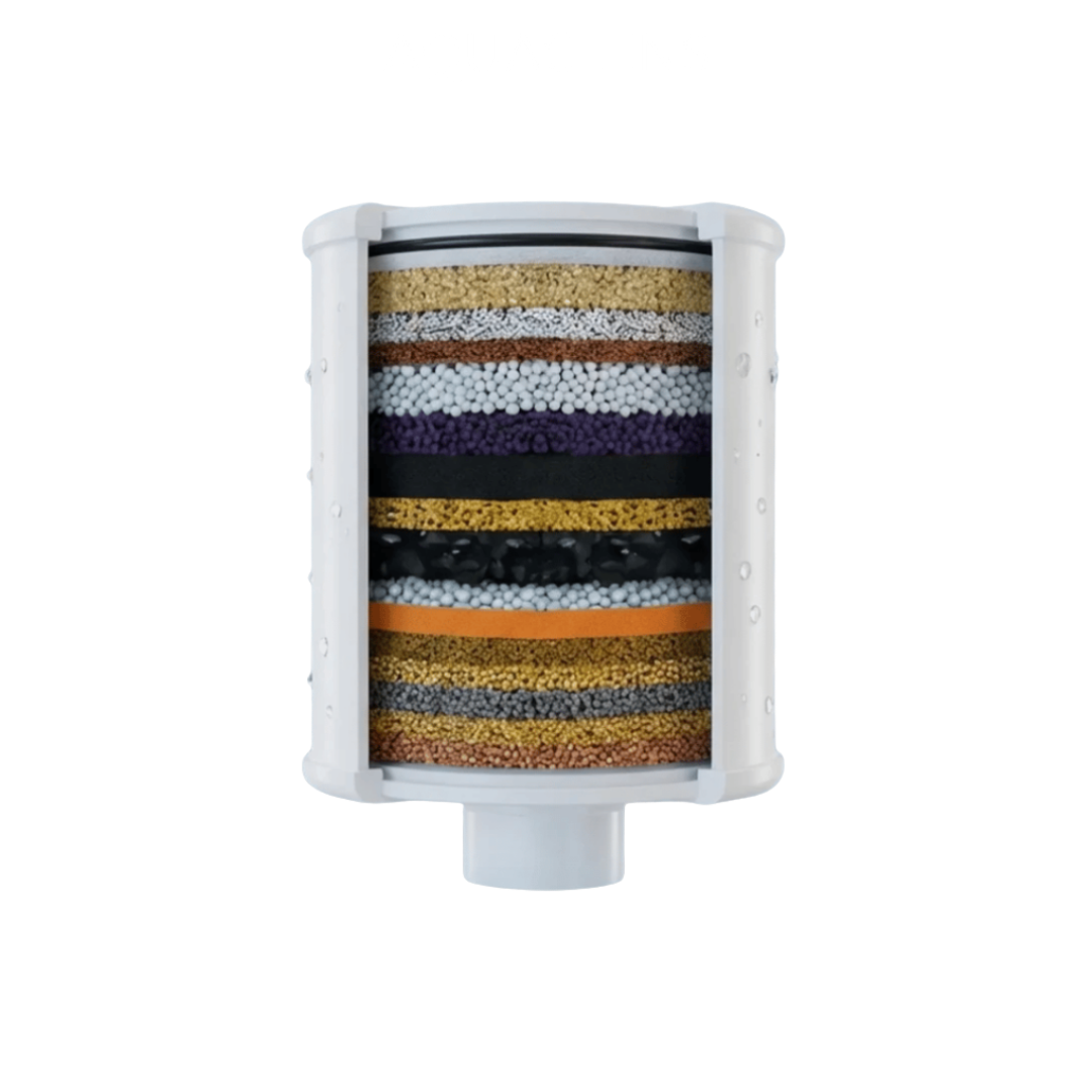 AquaClens is tested at 2.0 GPM, the average US shower flow rate. Not lab conditions. Not cold-water testing. Your actual shower. The three active filtration layers (KDF-55, Calcium Sulfite, Coconut Carbon) are the same materials used in municipal water treatment, specifically chosen because they work in hot water where cheaper filter media stops performing.